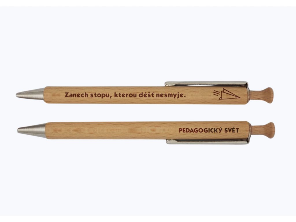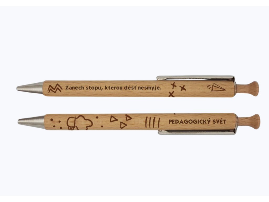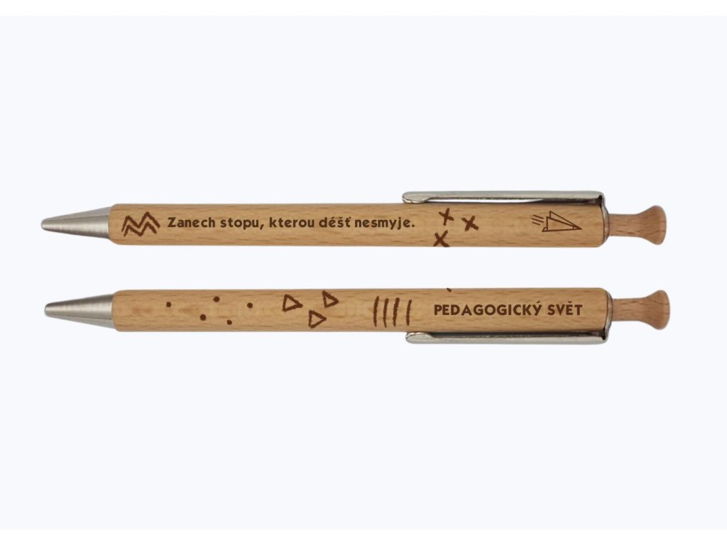 Vybrat si můžeš ze tří vzorů. Každý kus je originál a letokruhy na Tvé propisce budou jedinečné. Ručně vzorovaná – propiska se do pedagogického kabátku oblékla v šumavských Kašperských Horách.