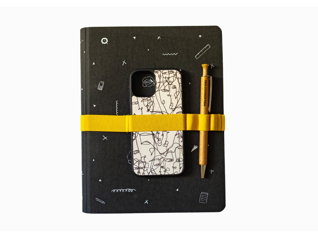 Guma, která uzavře diář a podrží Ti i psací potřeby, je mezinárodní patent českého studia papelote, my jsme speciálně pro učitele přidali poutko i na mobil či kalkulačku, a proto tenhle praktický minimalistický penál pořídíš jen u nás. Gumičkou udrží i myš či adaptér.